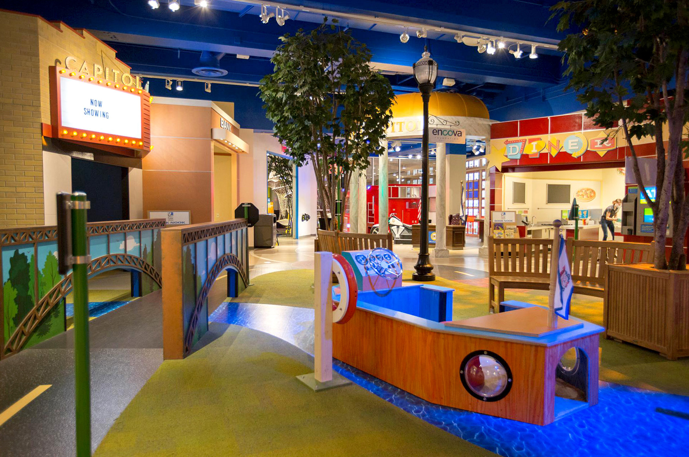 Other recent improvements included serving as architect and engineer of record for the My Town and Waterworks exhibits, which were designed by Argyle Design. For these projects, ZMM provided code compliance reviews, as well as architectural, mechanical, electrical, plumbing design, and standard construction phase services. As part of the Waterworks exhibit, ZMM also provided architectural and structural design services to create two new large curtainwall windows to help connect the exhibit to the community.