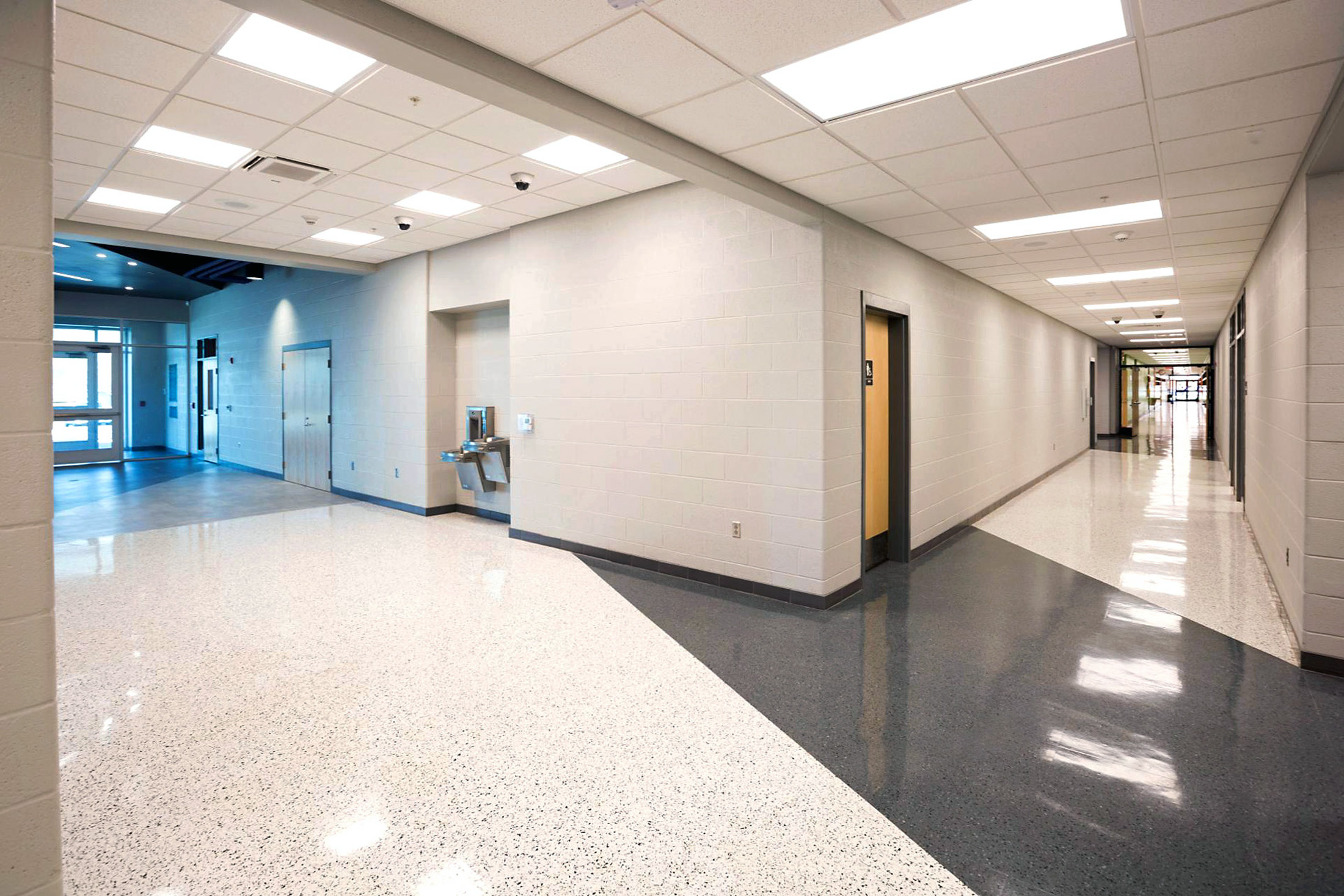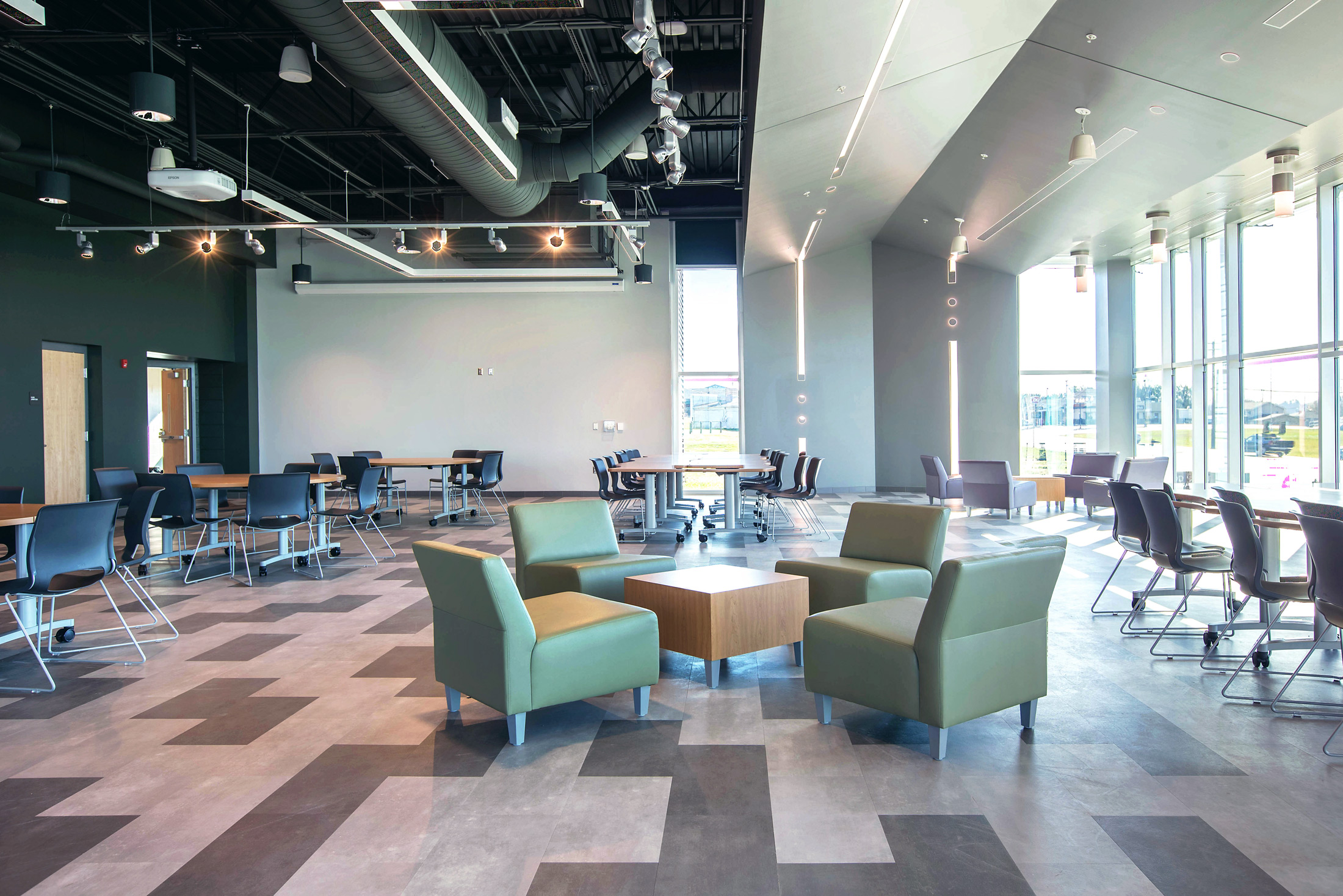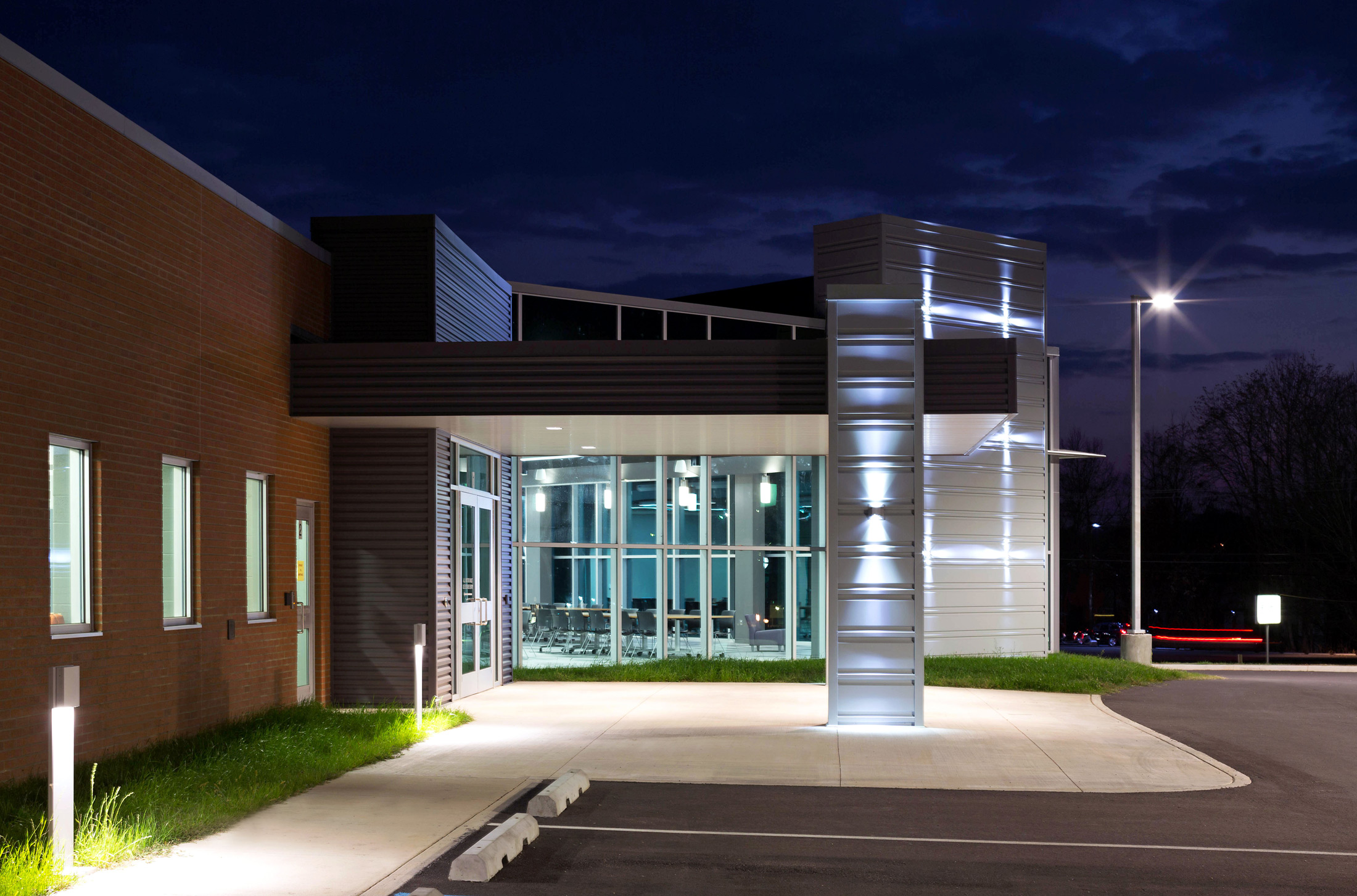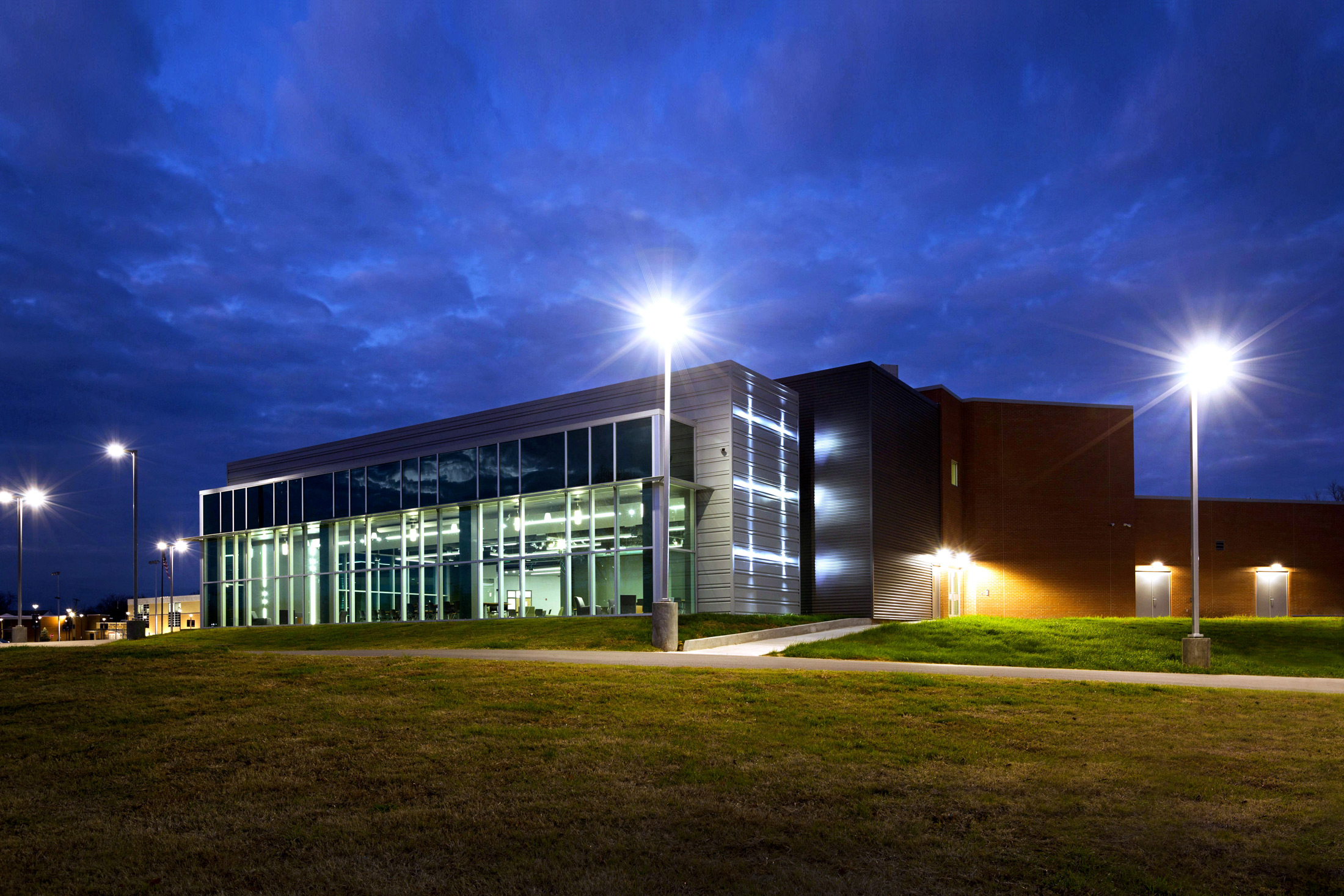 The licensed practical nursing and adult education programs were relocated to the addition from another facility. 4,000 SF were added to the undersized welding shop. The new two-story area, administrative office area, and welding lab were constructed with a brick veneer façade. The new stair towers and entrance were clad in metal wall panels. The office suite areas were constructed with partitions, providing flexibility for future expansion or reconfigurations. The existing building was reconfigured to accommodate an options classroom, ProStart catering kitchen and classroom, and a therapeutic lab/classroom. Exterior windows and insulated panels were replaced, along with exterior doors and door hardware.
