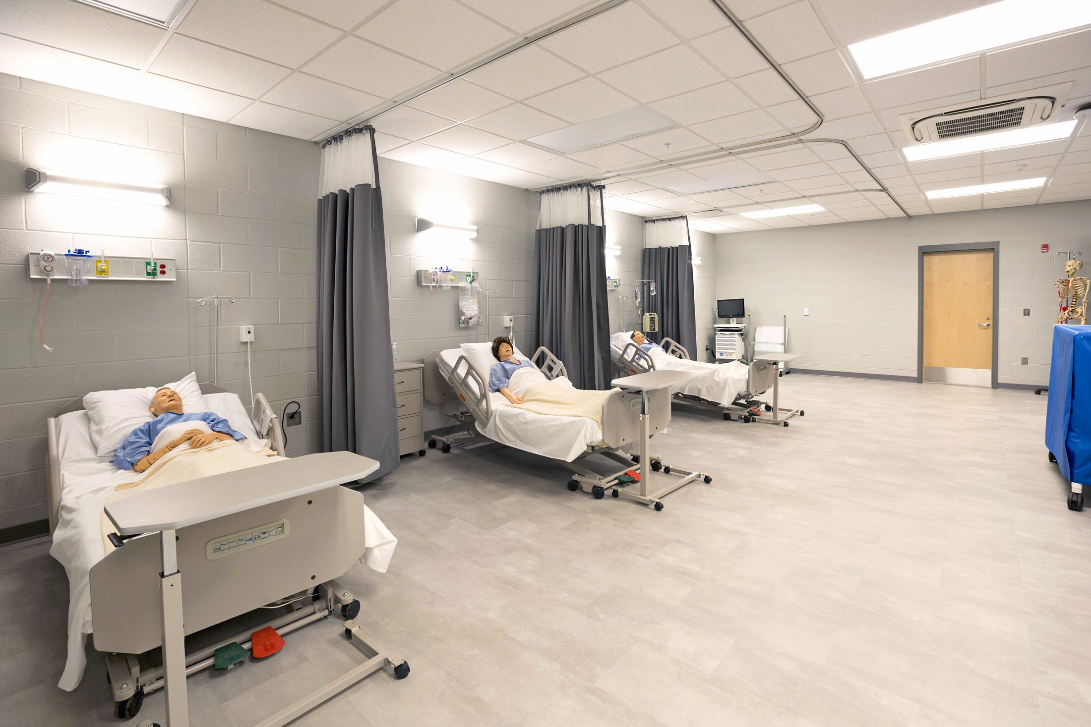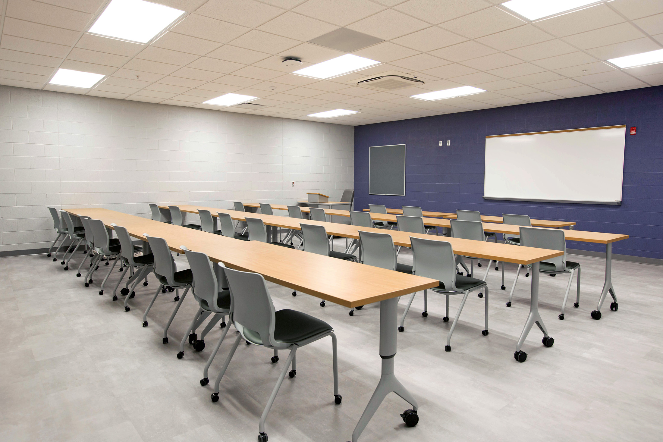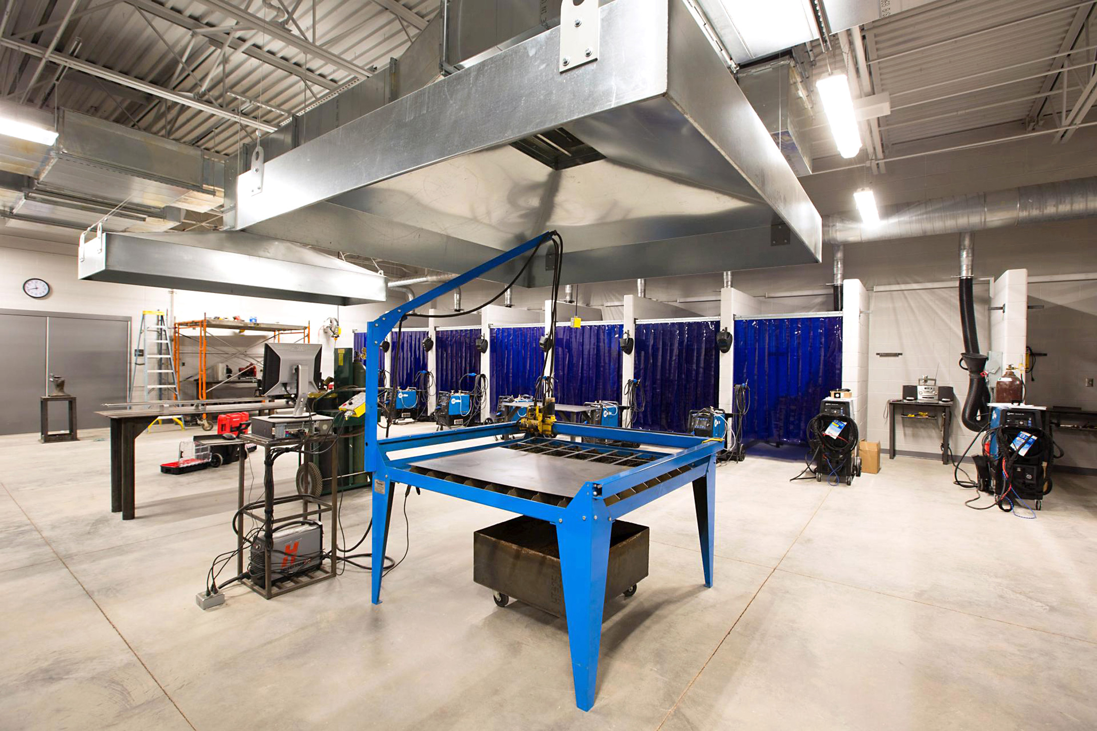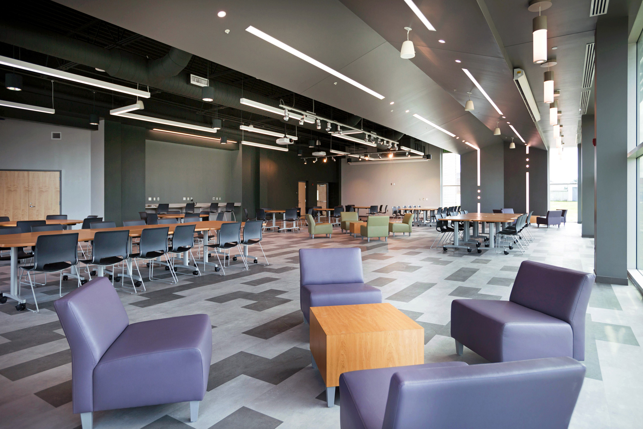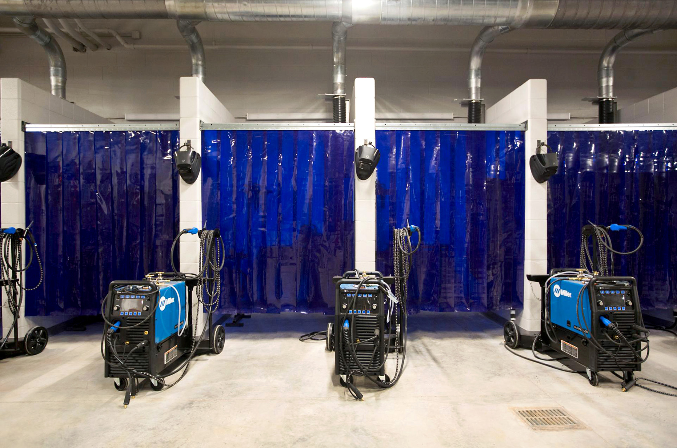 The licensed practical nursing and adult education programs were relocated to the addition from another facility. 4,000 SF were added to the undersized welding shop. The new two-story area, administrative office area, and welding lab were constructed with a brick veneer façade. The new stair towers and entrance were clad in metal wall panels. The office suite areas were constructed with partitions, providing flexibility for future expansion or reconfigurations. The existing building was reconfigured to accommodate an options classroom, ProStart catering kitchen and classroom, and a therapeutic lab/classroom. Exterior windows and insulated panels were replaced, along with exterior doors and door hardware.