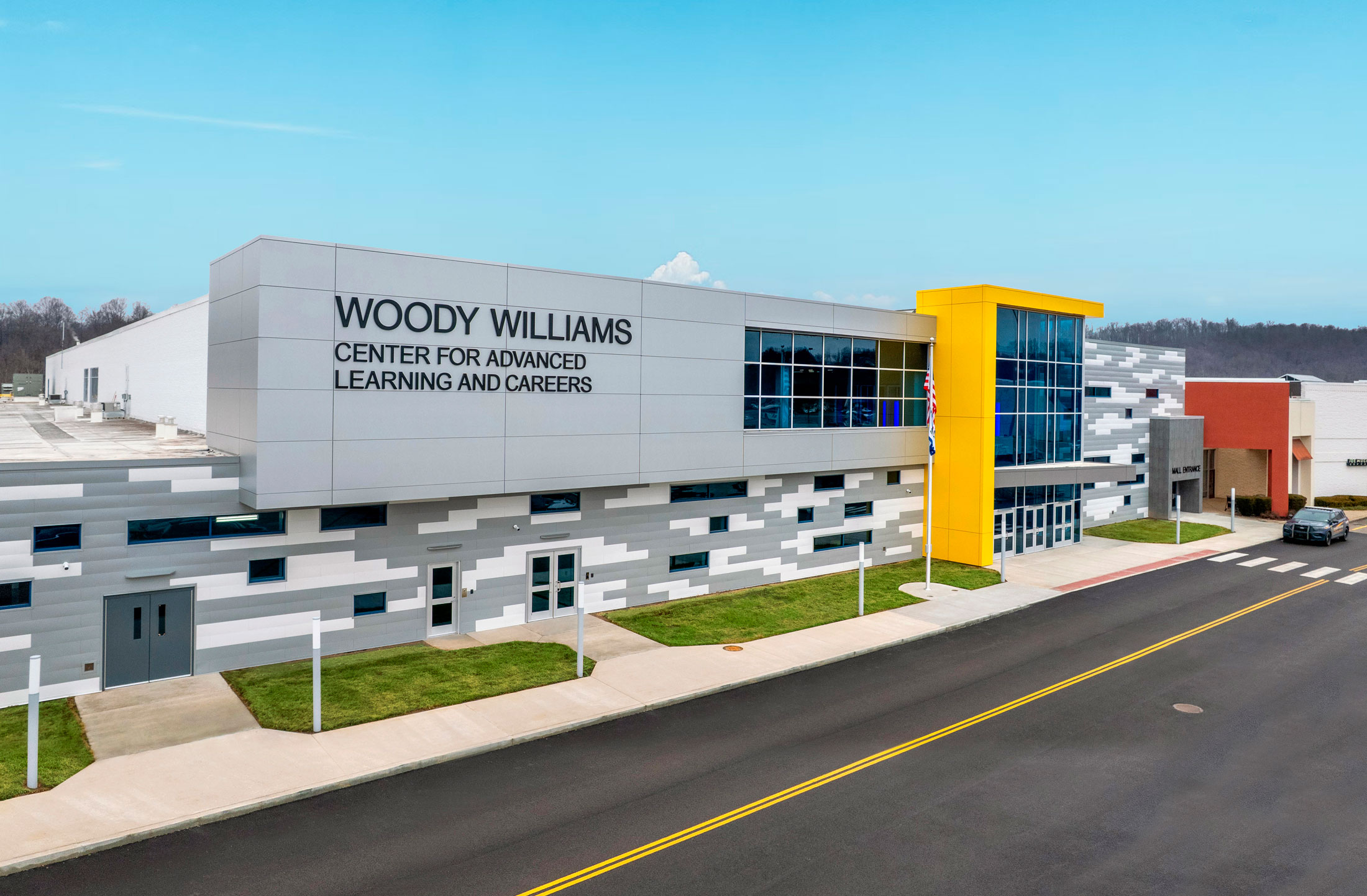 The Woody Williams Center for Advanced Learning and Careers was one of six projects funded through a bond passed by Cabell County voters in 2020. This is a groundbreaking project for Cabell County Schools and education design in West Virginia that reimagines an abandoned retail store into a career academy, showcasing technology and career education for high school students and adult education.