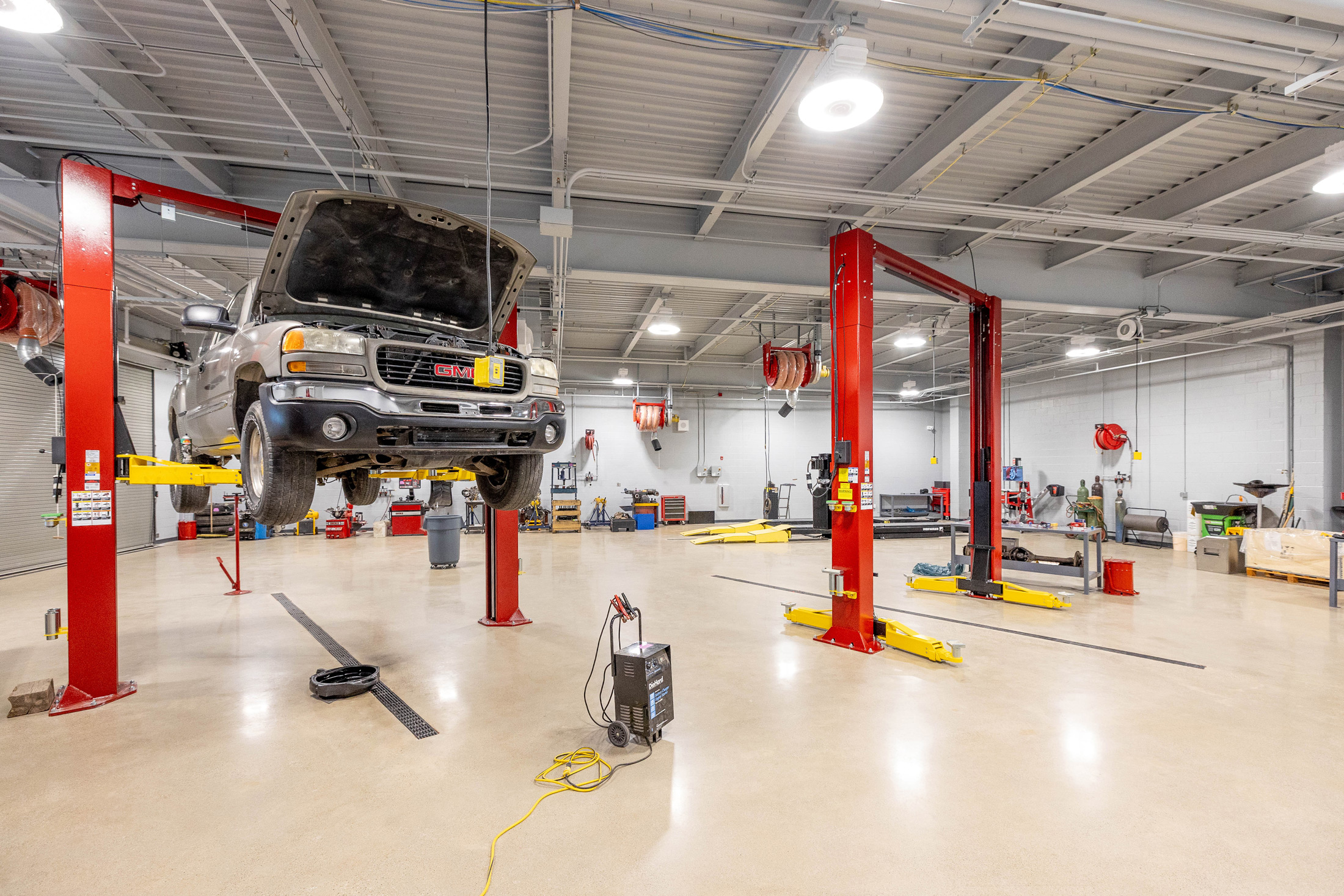 The innovative career center prepares students for the workplace through a variety of pathways in career and technical fields. Programs include auto mechanics, collision repair, building maintenance, carpentry, welding, HVAC, electrical technology, machine tool trades, culinary arts, and cosmetology as well as programs in graphic design, law and public safety, health sciences, and coding application and game design. The facility also includes a physical education space and event venue as well as a full kitchen and dining space. This facility also has all the program support amenities of a high school including an outside walking track, outside basketball courts, and pickleball courts.